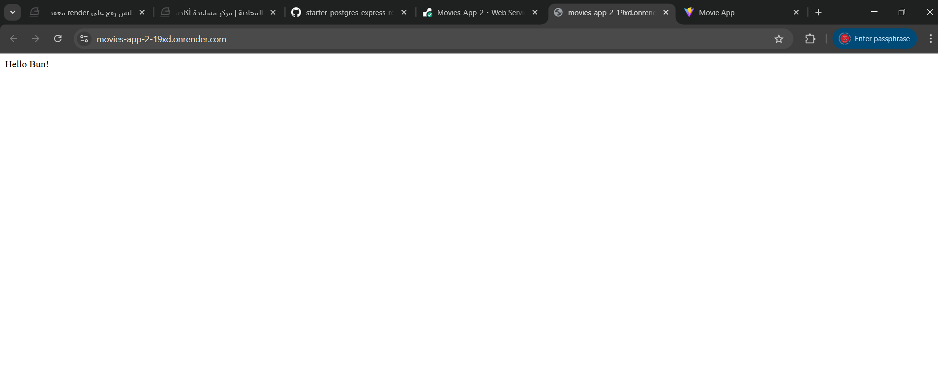 هي ب نسبة ل رابط ريندر لكنه لا يعمل مع مشروعي https://www-movies-app.netlify.app/ هاد رابط مستودع https://github.com/ZenZN99/Movies-App import React, { useEffect, useState } from "react"; import "./register.css"; import toast from "react-hot-toast"; import { useNavigate } from "react-router-dom"; import AOS from "aos"; import "aos/dist/aos.css"; const Register = () => { const [form, setForm] = useState({ username: "", email: "", password: "", }); const [error, setError] = useState(""); const [loading, setLoading] = useState(false); const navigate = useNavigate(); const handleChange = (e: React.ChangeEvent<HTMLInputElement>) => { setForm({ ...form, [e.target.name]: e.target.value }); }; const handleSubmit = async (e: React.FormEvent) => { e.preventDefault(); setLoading(true); setError(""); try { const res = await fetch("https://movies-app-2-19xd.onrender.com/api/auth/register", { method: "post", headers: { "Content-Type": "application/json", }, body: JSON.stringify(form), }); const data = await res.json(); if (!res.ok) { setError(data.error || "Something went wrong!"); } else { localStorage.setItem("token", data.token); localStorage.setItem("username", data.user.username); toast.success(`Welcome ${data.user.username}`); setForm({ username: "", email: "", password: "" }); navigate("/"); } } catch (error) { console.log(error); setError("Network error. Please try again later."); } finally { setLoading(false); } }; useEffect(() => { if (error) { const timer = setTimeout(() => { setError(""); }, 5000); return () => clearTimeout(timer); } }, [error]); useEffect(() => { const token = localStorage.getItem("token"); if (token) { navigate("/"); toast("You are logged in with action", {duration:3000}); return; } }, []); useEffect(() => { AOS.init({ duration: 2000 }); }, []); return ( <div className="register-container" data-aos="fade-up"> <div className="register-wrapper"> <div className="register-card"> <h1 className="register-title">Create Account</h1> <p className="register-subtitle">Join our community today</p> <form onSubmit={handleSubmit} className="register-form"> {error && <p className="error-message">{error}</p>} <input type="text" name="username" placeholder="Username" value={form.username} onChange={handleChange} required /> <input type="email" name="email" placeholder="Email Address" value={form.email} onChange={handleChange} required /> <input type="password" name="password" placeholder="Password" value={form.password} onChange={handleChange} required /> <button type="submit" className="register-btn"> {loading ? "Creating an account..." : "Register"} </button> </form> <p className="register-footer"> Already have an account? <a href="/login">Login</a> </p> </div> </div> </div> ); }; export default Register; import express from "express"; import dotenv from "dotenv"; import userRouter from "./routes/user.route"; import cors from "cors"; dotenv.config(); const app = express(); const port = process.env.PORT || 3000; app.use( cors({ origin: "https://www-movies-app.netlify.app", credentials: true, }) ); app.use(express.json()); app.use("/api/auth", userRouter); app.get("/", (req, res) => { res.send("Hello Bun!"); }); app.listen(port, () => { console.log(`Server is running on port ${port}`); });