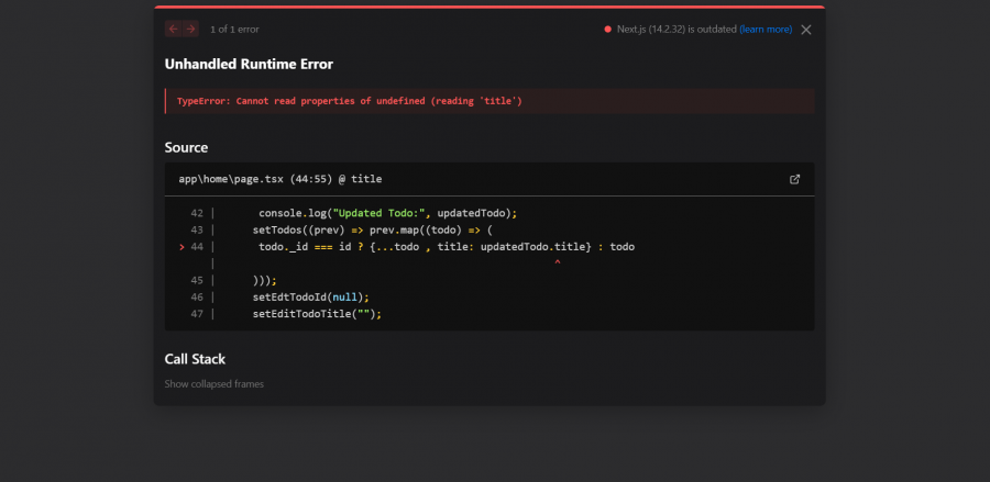 تواجهني مشكلة غريبة ولا اعلم ما هي حتى ذكاء اصطناعي لم يستطع حلها مشكلة موجودة في ملف page.tsx داخل مجلد home To-do-list full stack.zip