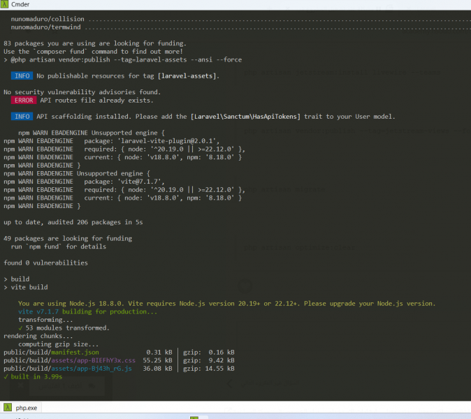 قم أولاً بحذف الإعدادات والملفات المؤقتة: php artisan optimize:clear ثم أعد التثبيت: php artisan jetstream:install livewire --teams ثم نشر ملفات Jetstream من جديد php artisan vendor:publish --tag=jetstream-views --force و: php artisan migrate ثم تنفيذ: php artisan optimize:clear